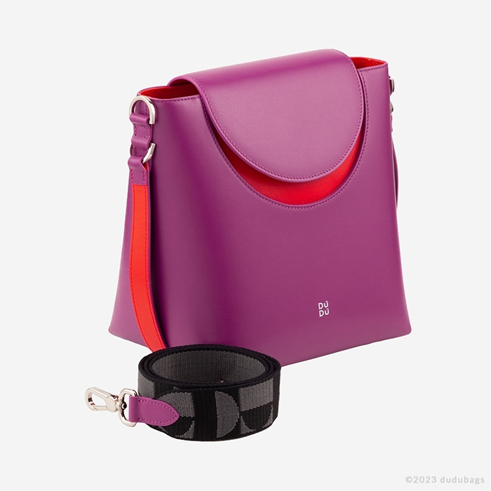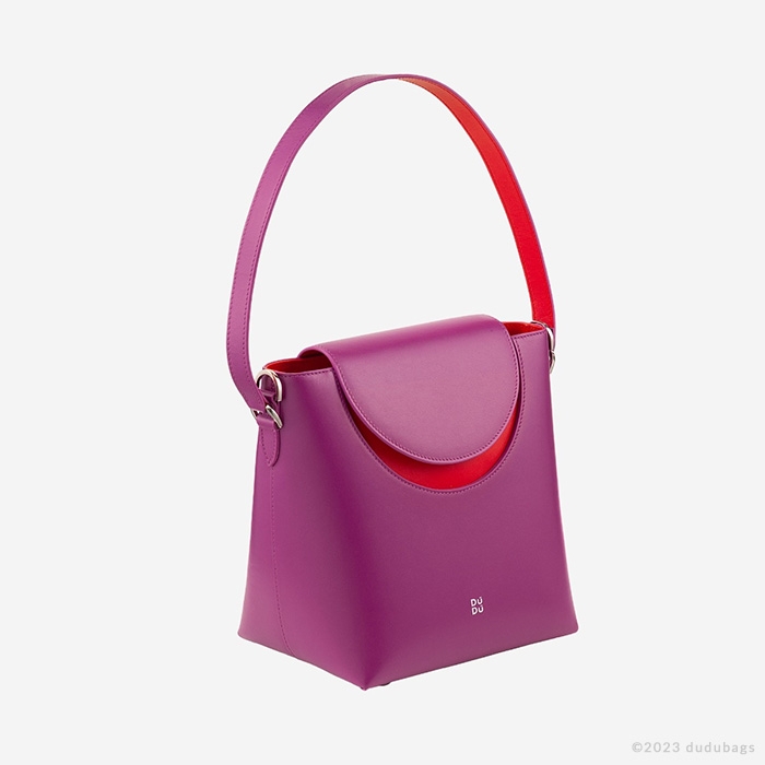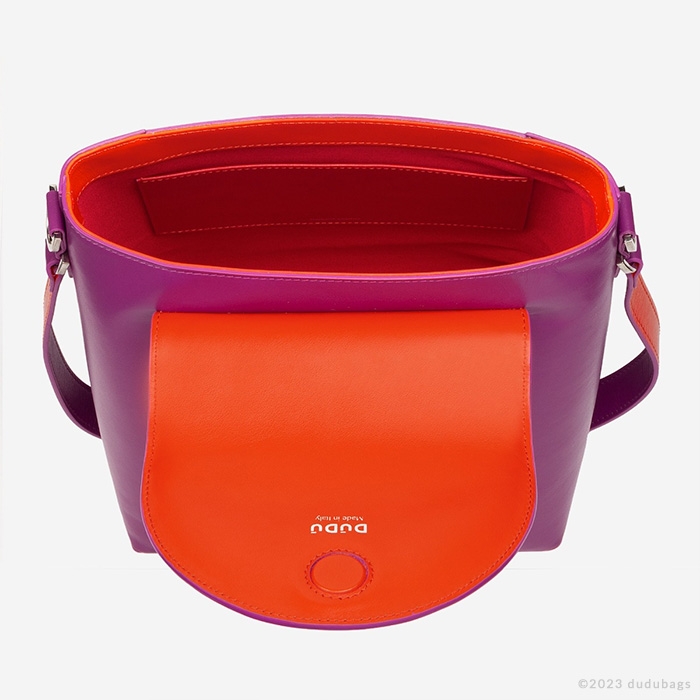 バケツのシルエットと丸い形状を持つ当社のパルマレザーバッグは、快適さとエレガンスの間で完璧なバランスを取っています。このMade in Italyバッグのクラシックな形状は、フラップの開口部での対照的な色彩によって豊かにされています。洗練された女性、しかし、ちょっとした洒落を愛する女性のために設計されています。DuduのDを思わせるジオメトリックデザインのリサイクルコットンポリエステル製の取り外し可能なジャカードリボンショルダーストラップか、レザーショルダーストラップでクロスボディバッグとして着用するのに最適です。